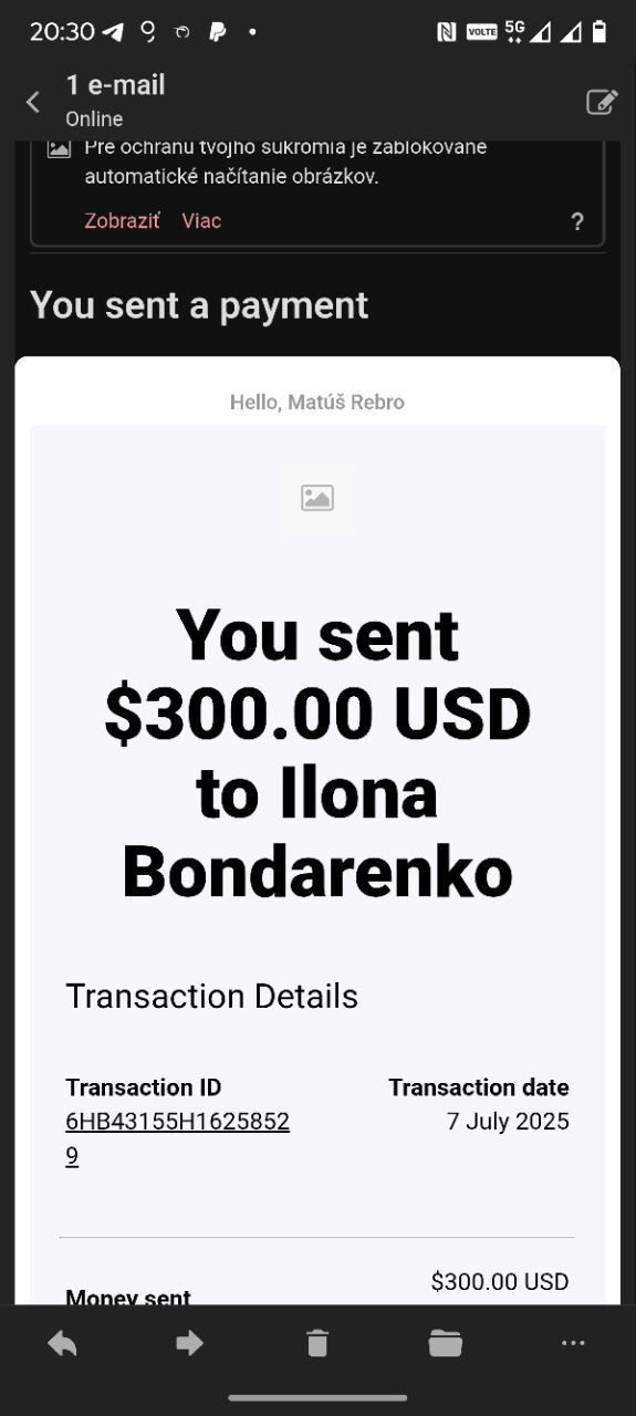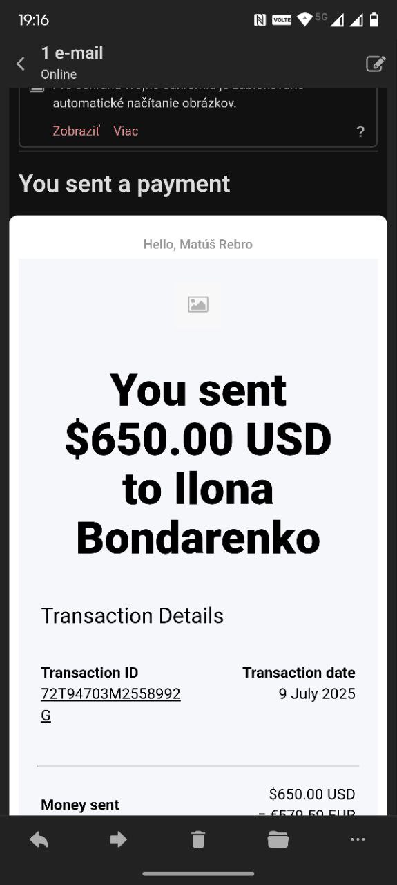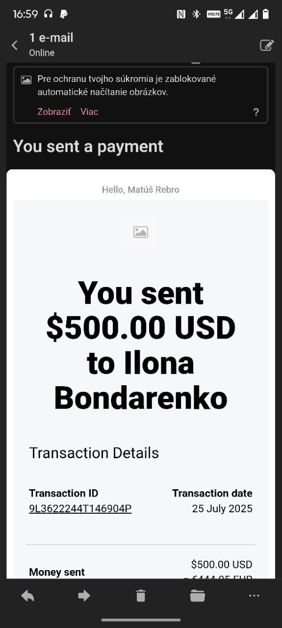 - Payment for medical bills - chemotherapy (9 July 2025) Go to Telegram message