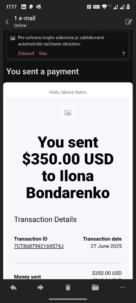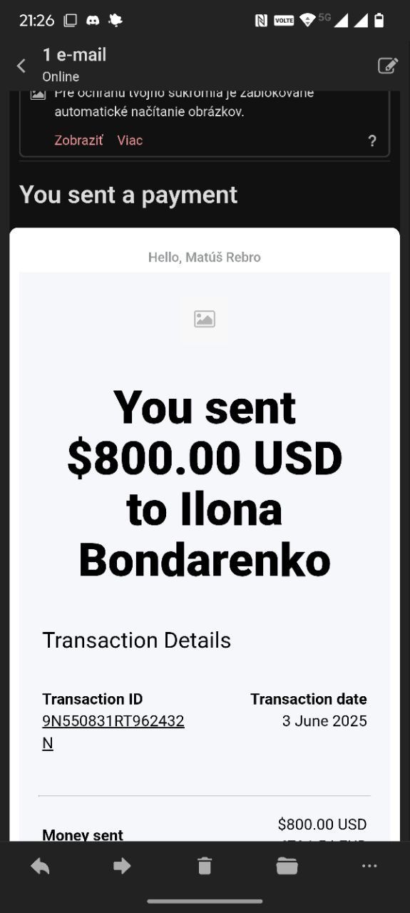 - Payment for apartment - after begging me in multiple previous messages (27 June 2025) Go to Telegram message