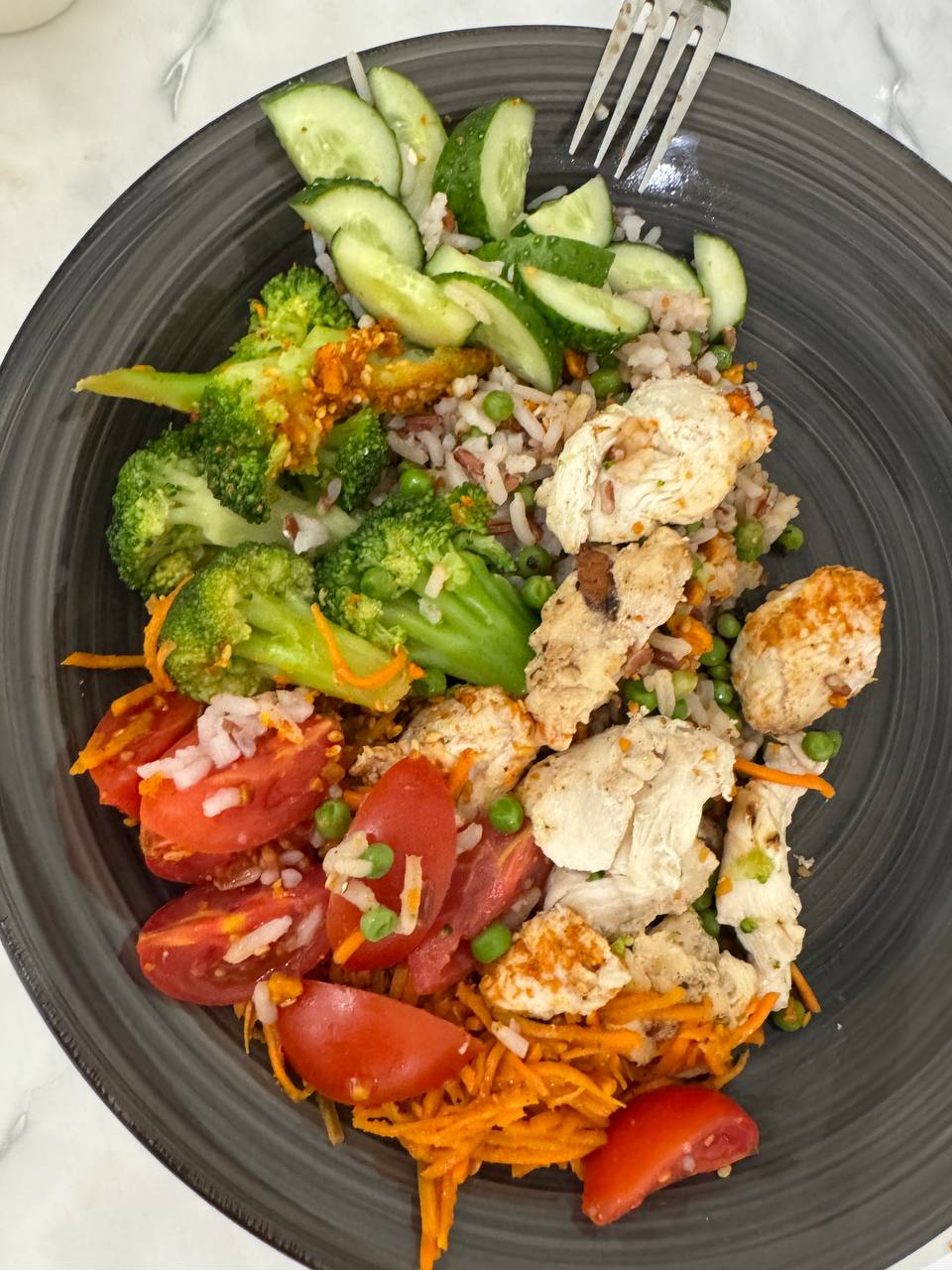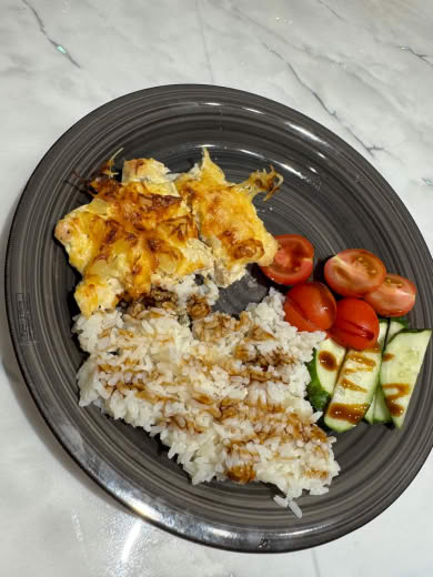 Так рис з куркою та огірочками було поїсти дуже смачно, які в тебе настрій в скільки тобі прокидатись завтра?🤗❤️