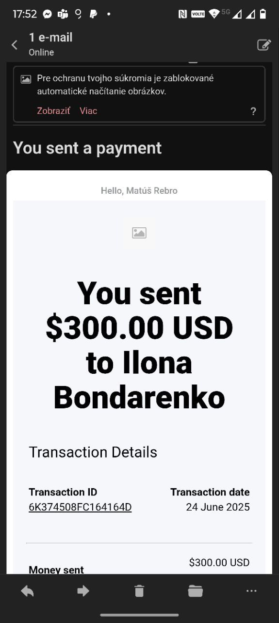 - Payment for medical bills - chemotherapy and MRI (3 June 2025) Go to Telegram message